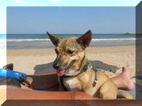 Spanien 2014 - Urlaub im sonnigen Spanien - Sonne, Sand und super Wasser am Strand zu spielen und im Schatten schlafen ist das nicht ein tolles Hundelen.